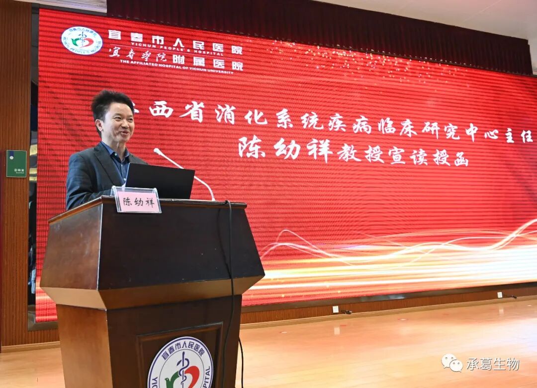 南昌大學(xué)第一附屬醫(yī)院消化內(nèi)科主任、江西省消化系統(tǒng)疾病臨床醫(yī)學(xué)研究中心主任陳幼祥教授宣讀建立宜春分中心授函。